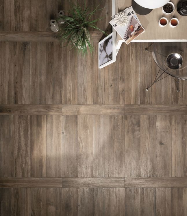 This Larix Fume 5.5×32 porcelain tile comes in a semi-polished finish.