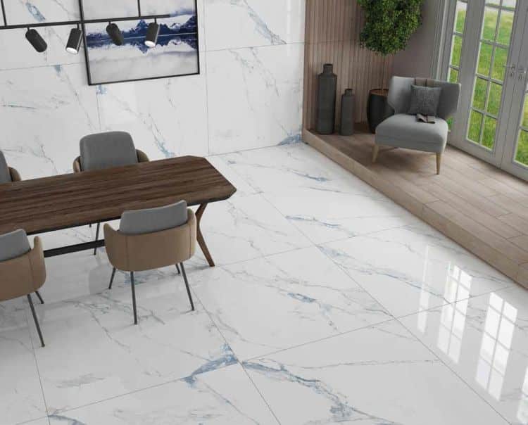 This Marshall Blue 24 x 48 porcelain tile comes in a polished finish.