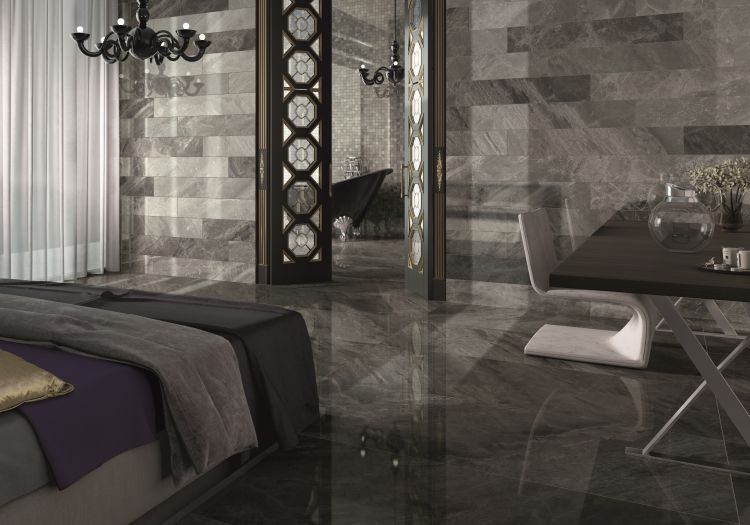 This Supreme Charcoal 24×48 porcelain tile comes in a polished finish.