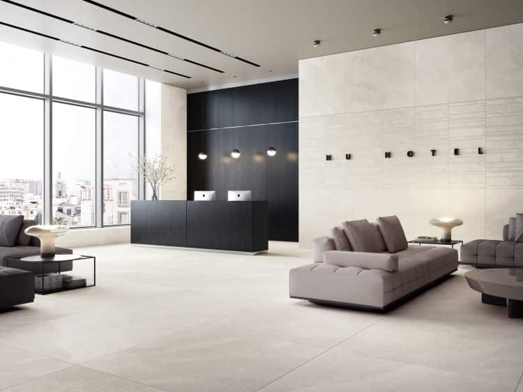 This Tune Snow 24 x 48 porcelain tile comes in a matte finish.